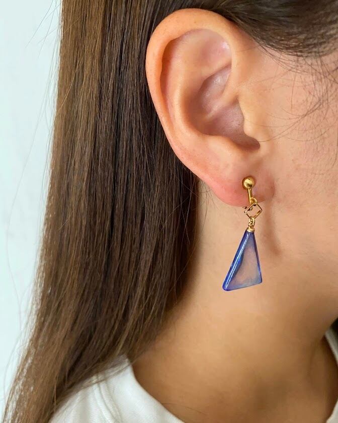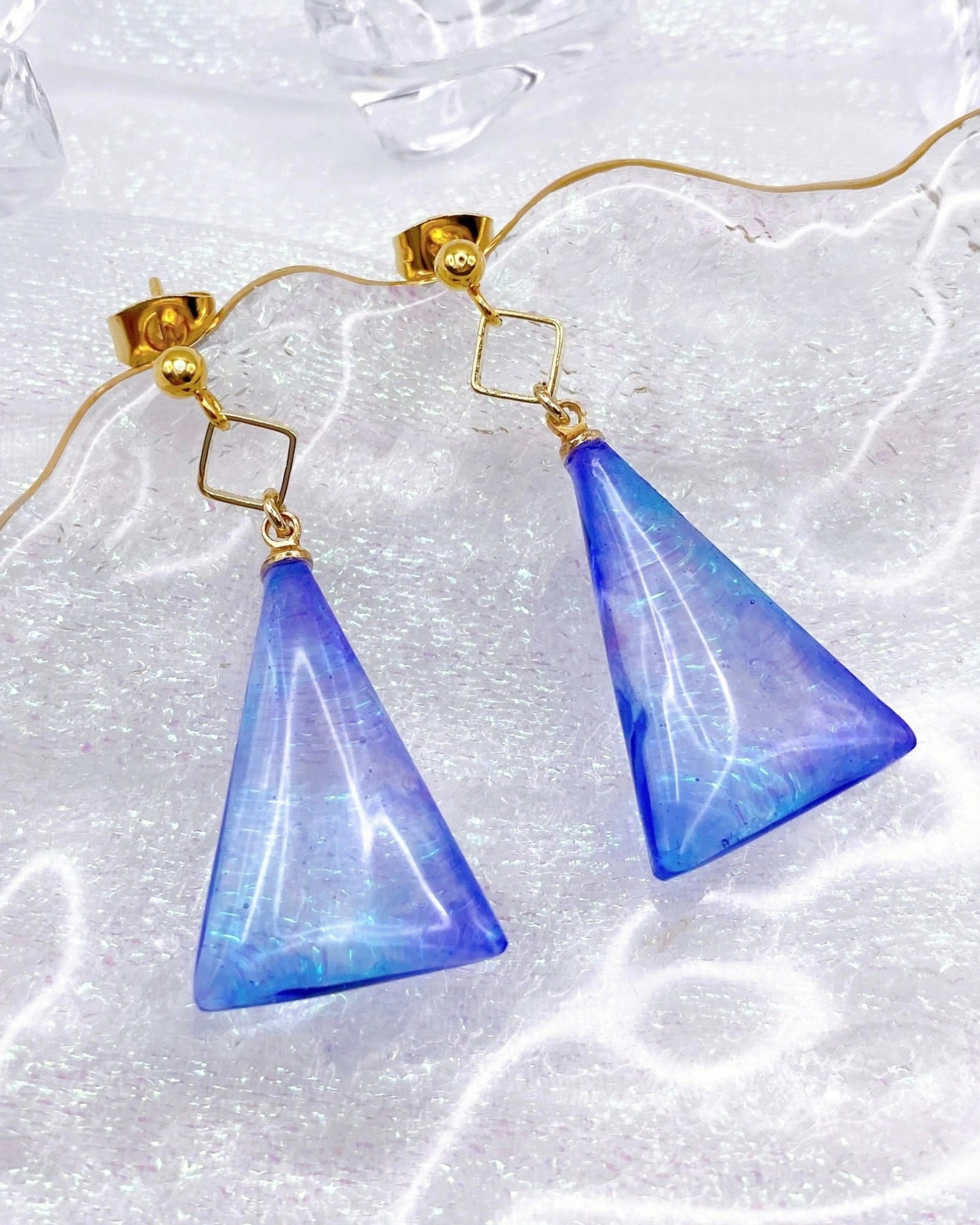 【送迎・ランチ会に】アレルギー対応|知的な透明感。パープルからブルーへ。幻想的に揺れるレジンピアス。ゴールドフレームの輝き。