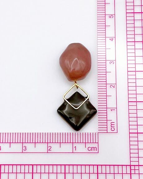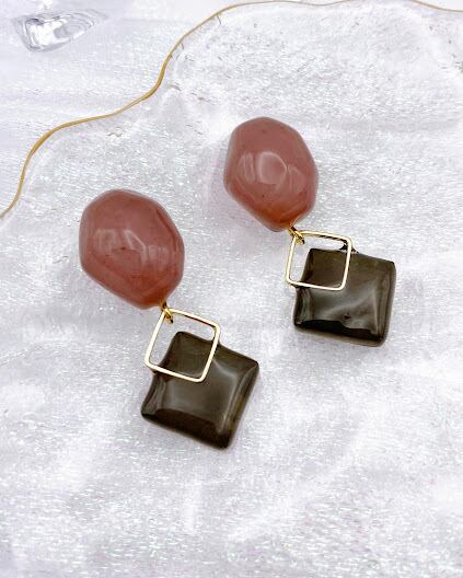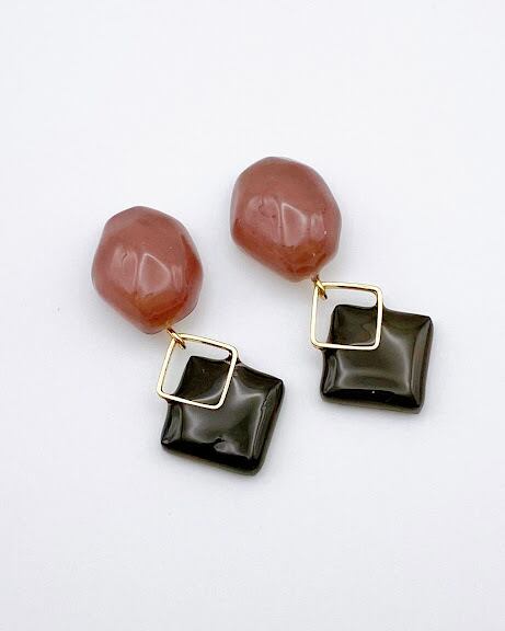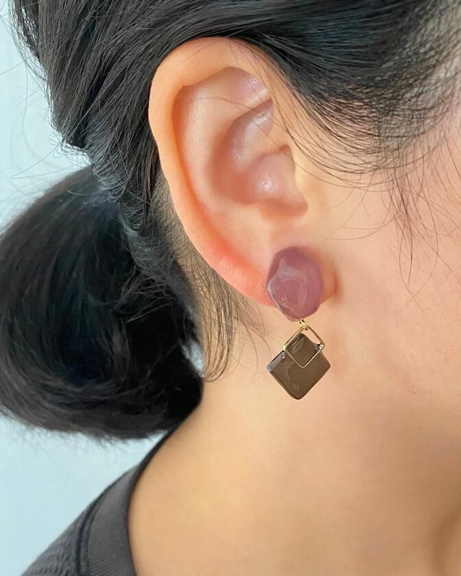 【送迎・ランチ会に】アレルギー対応|カフェモカのような温もり。アンティークブラウンのタイルピアス。ゴールドフレームの輝き。