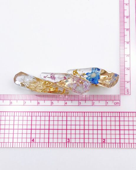 樹脂、金糸、金箔、押花、ガラスカレット