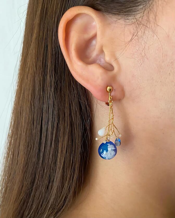 この澄んだ空色のピアスが心を凪がせ、