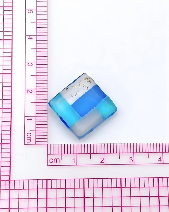 スカイブルー、ターコイズ、ホワイトグレー。三色のレジンが重なり合い、どこまでも続く青空のような美しいコントラストを生み出しています。