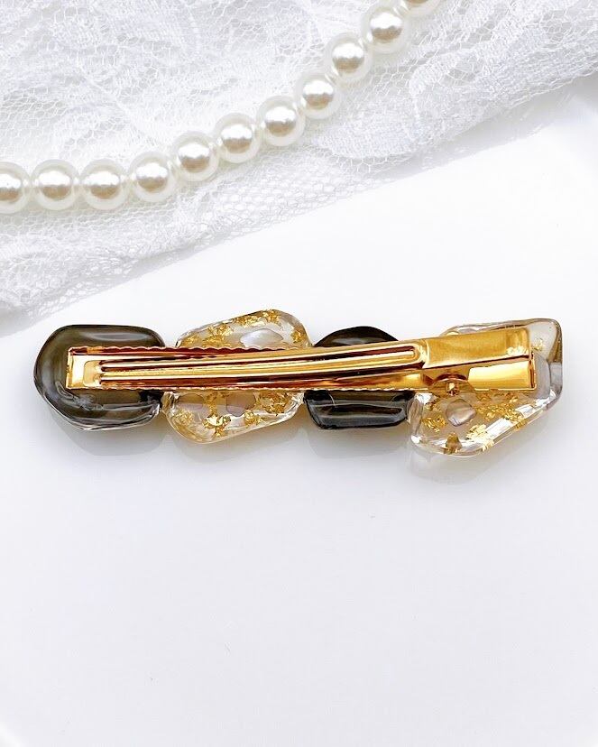 【園行事・ランチ会に】凛とした横顔。バロック調レジンと金箔シェルの漆黒ヘアクリップ。