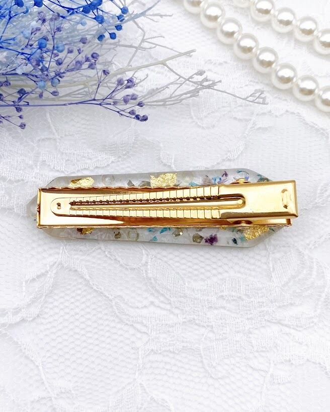 品質向上のため、ヘアクリップ金具の仕様を変更いたしました。 現在の掲載写真と、金具の形状が若干異なる場合がございます。あらかじめご了承ください。