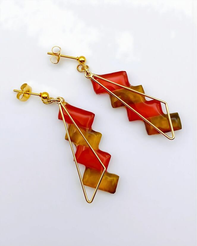 【夏の行事に】アレルギー対応|大人の「色気」を纏う。レッドタイルのスクエアピアス。ドラマチックな彩りで、いつもの服を一瞬で格上げ。