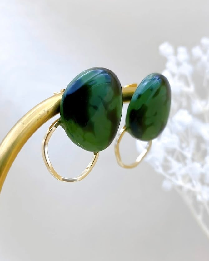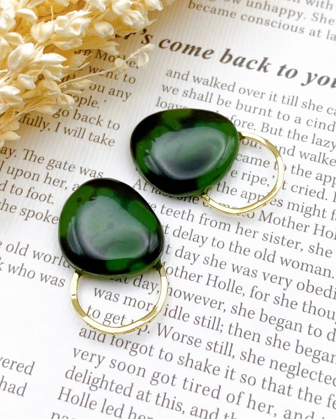 【送迎・遠足に】アレルギー対応|ハンサムな横顔を作る。カーキ&ブラックのマーブル。カジュアルを“きれいめ”に引き締める大人の耳元に。