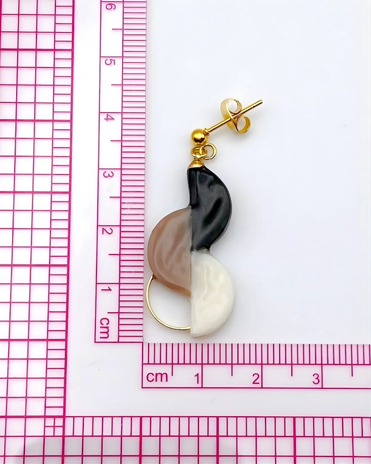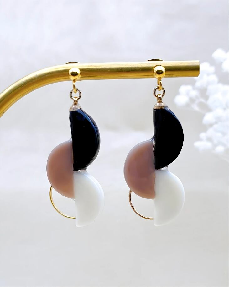 【お迎え・ランチ会に】アレルギー対応|顔周りパッと華やぐ。大人のまろやかバイカラー。ベージュ・ホワイト・ブラック。柔らかな印象で「好印象」を叶える耳元に。