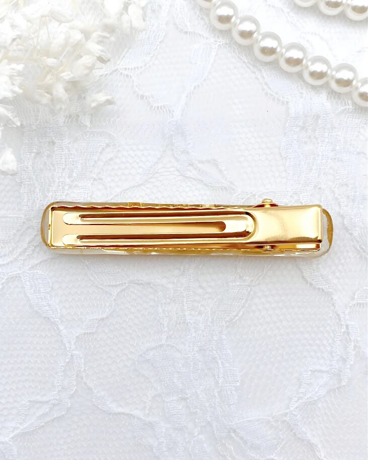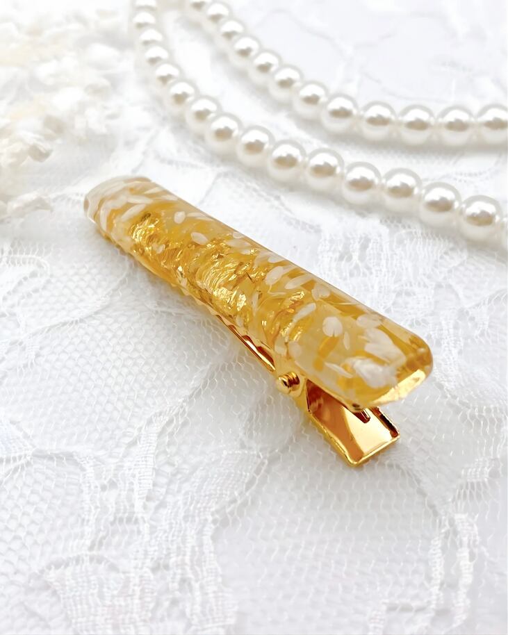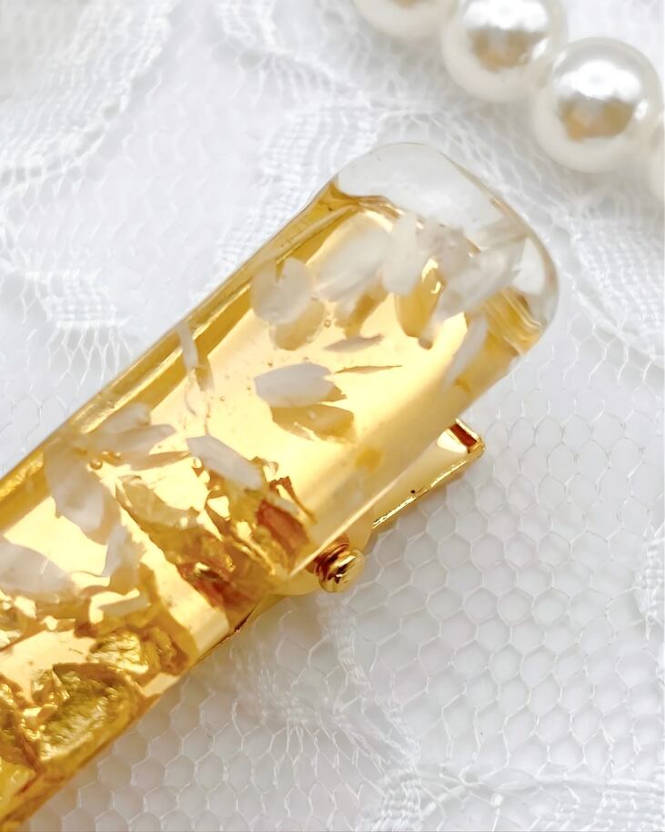 【懇談会・保護者会に】後ろ姿もパッと華やぐ。大人の「彩り」ヘアクリップ|レジン×金箔×ドライフラワー。これひとつで後ろ姿まで自信が持てる。(ホワイト)
