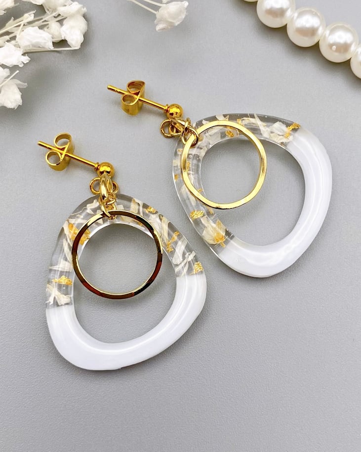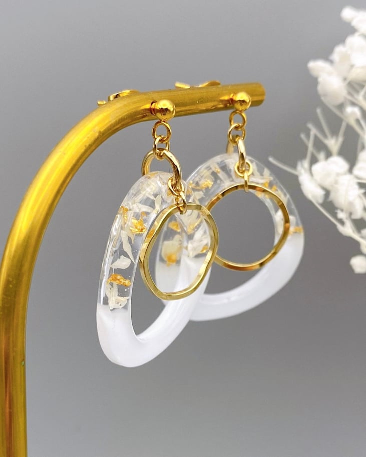 樹脂、金属パーツ、ドライフラワー、金箔