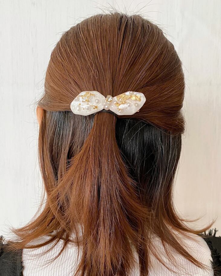 【入園式・ハレの日に】パールと金箔が舞うリボンクリップ。忙しい朝もこれひとつで「品よく」まとまる。