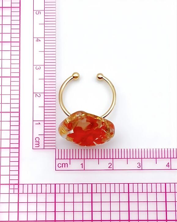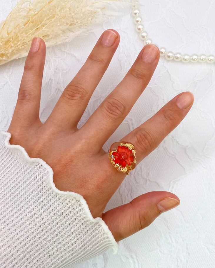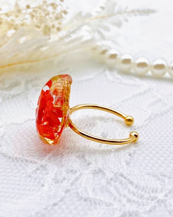 【園の送迎に】光をまとう花と金箔のリング。自分へのご褒美に。フリーサイズ(レッド)