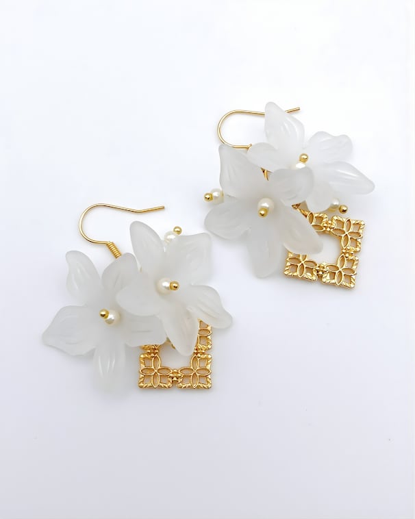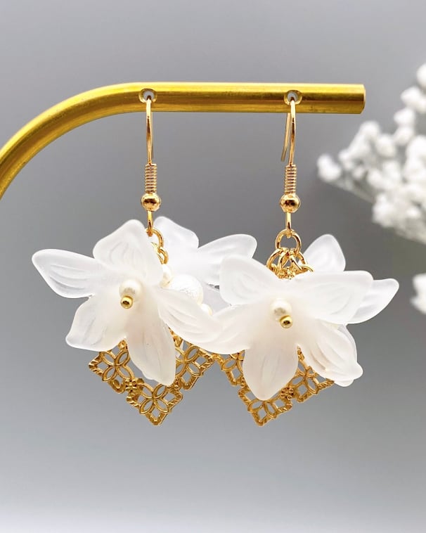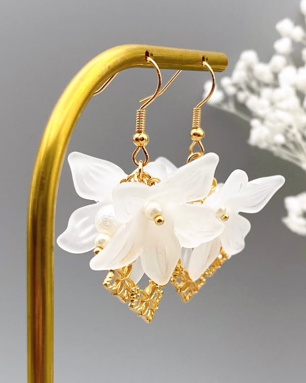 【入園式・入学式に】光まとう「リリー・ブーケ」透かしゴールドとフロストフラワーのピアス