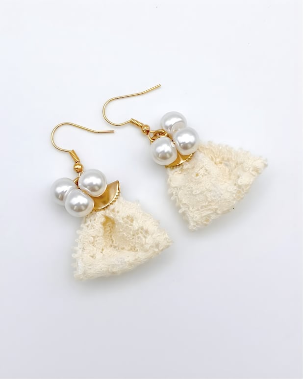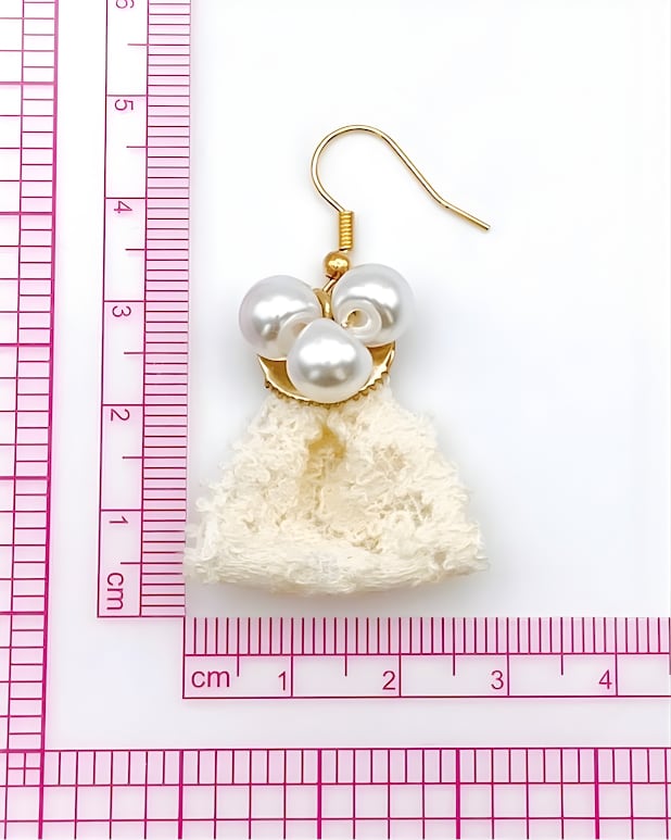 清潔感あふれるホワイトの耳飾りができました。