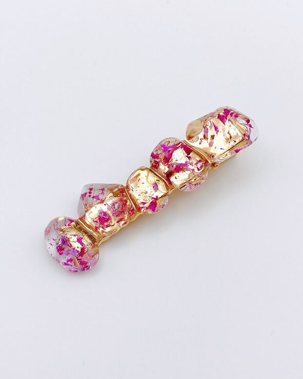 ・ドライフラワーのレジンヘアクリップ(マゼンタピンク)/単品価格2,000円