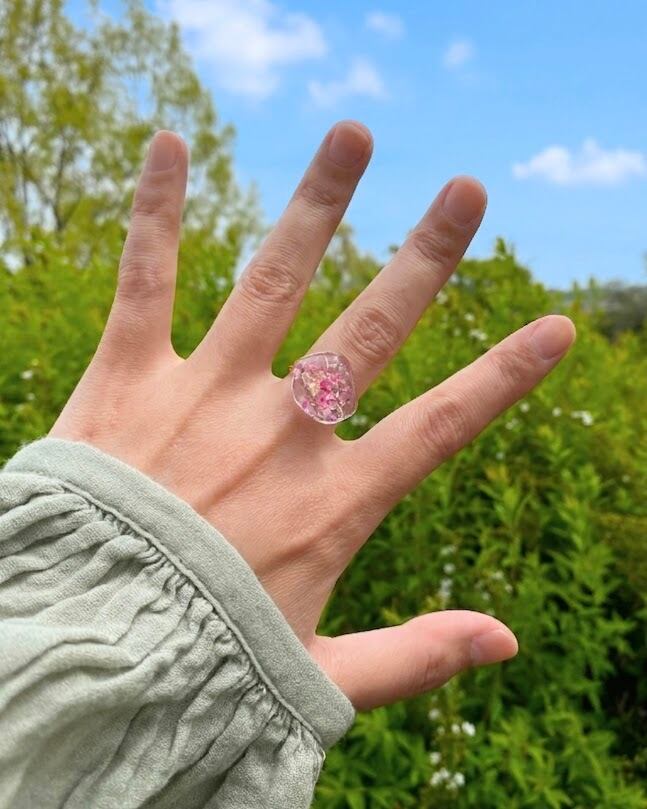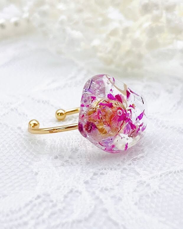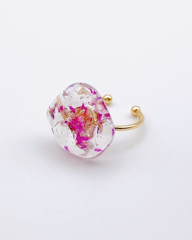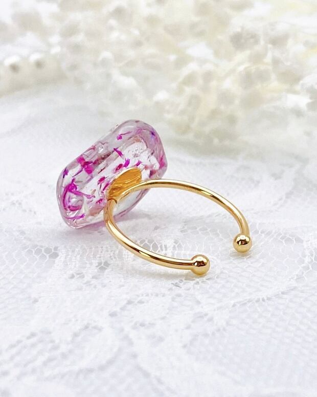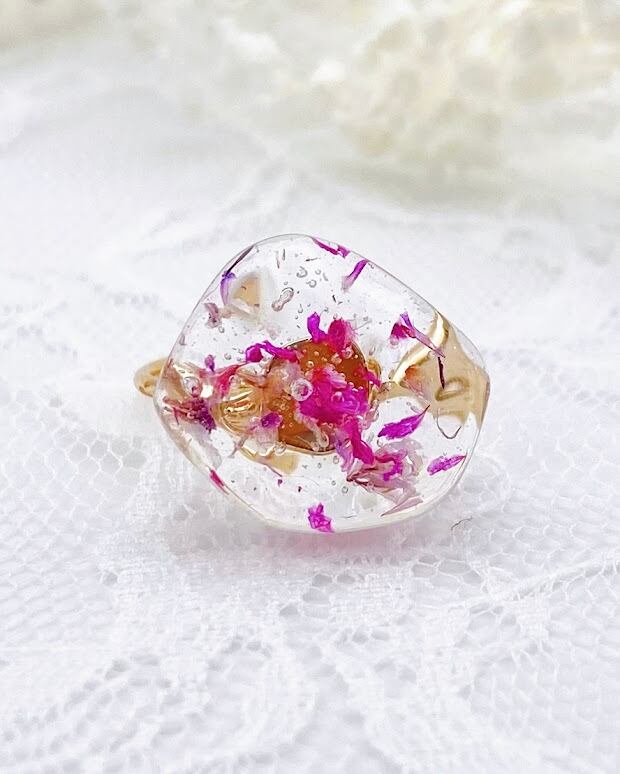 ・ドライフラワーのレジンリング(マゼンタピンク・フリーサイズ)/単品価格1,800円