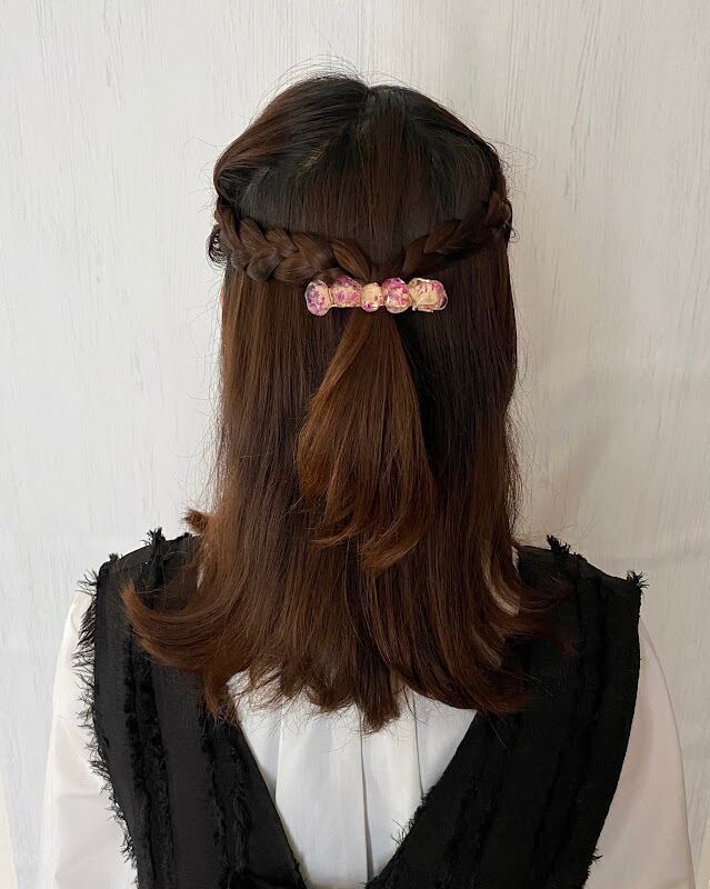 サイドの髪を留めたり、まとめ髪に添えたり。
